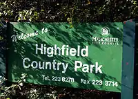 Highfield Country Park is a 70-acre (280,000 m2) area of open land, situated on the east side of Levenshulme, Manchester, that stretches to the east of Broom Avenue across to the rear of Reddish Golf Course and to the junction of Longford Road, Reddish and Nelstrop Road, Levenshulme.[1]