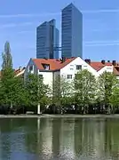 With construction works finished in the same year as Hochhaus Uptown München, the two towers helped motivate the formation of a citizens' initiative aimed at preventing the development of further structures of this type and size. Leading architects criticized the buildings as "imported imitation architecture" and "faceless yard ware", while local residents expressed concerns related to the skyscrapers destroying the traditional cityscape.[7]