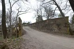 The Highway B-29 Bridge is a historic bridge in Prairie Grove, Arkansas. It is a single-span concrete arch bridge, carrying Washington County Route 623 across the Illinois River. The arch has a span of 97 feet (30 m), and the total structure length is 100 feet (30 m). Its deck is 17 feet (5.2 m) wide, and the bridge is typically 20 feet (6.1 m) above the water. Built in 1923, the bridge is one of the first built in the county by the Luten Bridge Company, which used an innovative technique involving metal rings (polished for visual effect on this bridge) that reduced the amount of material required for the structure.[2]