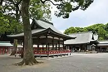 Hikawa Shrine (氷川神社, Hikawa-jinja) is a Shinto shrine located in Ōmiya-ku, Saitama, Saitama Prefecture, Japan. It is one of the two shrines claiming the title of ichinomiya of former Musashi Province. The main festival of the shrine is held annually on August 1.[1] The district of Omiya, literally "Great Shrine", derives from the special favor shown by Emperor Meiji, who raised Hikawa above all other shrines in the Kantō region.[2] It is the head of a network of approximately 280 Hikawa shrines mostly around the Kantō region.[3]