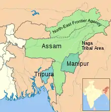 Northeast India comprises Assam and part or all of the former princely states of Manipur, Tripura and Sikkim.