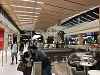 The next major change for the property came in 2008 with the bankruptcy and subsequent liquidation of Mervyn's. The building was subdivided between three major tenants: The Cheesecake Factory and H&M on the building's ground floor, and Forever 21 occupying the building's second level and part of the first.[12] The mall's Crate & Barrel store, which had opened in 1996, became outmoded with the opening of larger stores in San Francisco and Palo Alto and shuttered in 2011.[13] Paul Martin's American Grill opened in the former Crate & Barrel in 2013.[14]