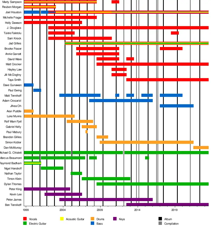 - Joel Houston – worship leader, acoustic guitar, keyboard, percussion