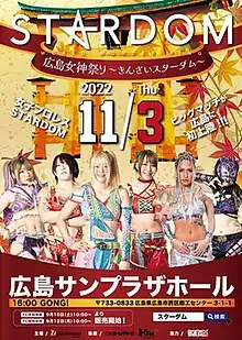 - ↑ World Wonder Ring Stardom (October 1, 2022). 2022.11.03 (木)[発売中]『広島女神祭り~きんさいスターダム~』広島サンプラザホール. stardom.com (in Japanese). Retrieved October 3, 2022.
