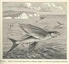 Hirundichthys rondeletii, the black wing flyingfish, is a species of flying fish from the family Exocoetidae which is found throughout the tropical and subtropical waters of the Atlantic, Pacific and Indian Oceans.