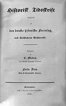 Historisk Tidsskrift is a Danish history journal established in 1840 with the founding of the Danish Historical Society in the same year. It is the oldest extant national journal for history.[1]