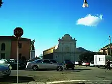 In the "new" Cerreto there was a real potters' quarter located near the Cathedral. During the renovation of several dwellings located in that area, remains of kilns for firing terracotta and ceramics were found.[64] In this "insula dei faenzari" were the workshops of Francesco Iadomaso, from Cerreto, and Carlo Coluccio, from Campobasso. In the same area stood the workshop of Nicolò Russo, a master ceramist who moved from Naples in 1693. In his workshop worked many young apprentices who during the 18th century became the main exponents of Cerretese ceramics: Domenico Marchitto, Santi Festa, Melchiorre Cerri, Nicola and Crescenzo Petruccio, Nicola Marchitto, Salvatore Paduano, and Giuseppe Paolino. Russo executed numerous works in Cerreto Sannita including several floorings in religious architecture.[65]