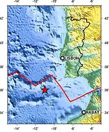 From the late 1710s onwards, a period of violent earthquakes began, which hit the Algarve and other regions of the country.[57] The first was on 6 March 1719, which destroyed a large number of buildings in Lagos, while another on 27 December 1722 also ruined several buildings and caused many deaths in the city, and created a tsunami.[90] Then earthquakes occurred on 12 October 1724, 27 December 1732, 2 February 1734, 25 October 1739.[57] This phase culminated with the 1 November 1755 earthquake and corresponding tsunami, which was considered the worst catastrophe of the century, and which devastated the city of Lisbon and many other towns in Portugal.[57]