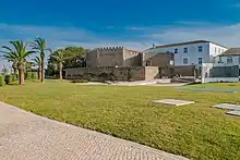 The Visigoth monarchy in the peninsula lasted about 300 years, until its extinction in the 8th century, due to the invasions of the Mohammedan peoples, who came from North Africa under the command of Tariq ibn Ziyad.[11] The Muslim campaign began in 711, and in that very year they defeated the Visigoth forces in the decisive Battle of Guadalete.[26] The Muslim invasion started very quickly, and in 713 they had already taken Seville, Mértola and other important cities, and the following year Evora, Santarém and Coimbra fell.[11][26] Lagos was taken by the Umayyads in 716, being handed over to Abd ar-Rahman I, Emir of Córdoba.[23] The settlement was thus renamed Halaq Al-Zawaia or Al-Zawaia, which, according to some authors, means "Muslim Monastery",[28] lake or well.[15] During Muslim rule, Lagos went into a deep decline, falling to the category of village.[4] It is possible that Lagos Castle was built during Muslim rule.[29]