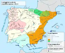 According to the historian Strabo, the city was conquered by the Carthaginians, led by Hamilcar Barca.[15] According to legend, when it was conquered it had the horses' troughs, the jugs and the jars for wine and water made entirely of silver, which showed the wealth of the city, despite having suffered from several conquest attempts by different peoples.[15] Ancient chroniclers assumed that the city was ruined during Carthaginian rule, and that it was almost completely destroyed in an earthquake and consequent tsunami[15] in the 4th century BC.[16] The city was rebuilt on a new site by Captain Bodo, who had been sent from Carthage to succeed Hanno.[15] Various dates have been advanced for the founding of the new city, such as 250[16] or 300 BC, Pomponius Mela and Laimundo de Ortega both proposed 400 BC.[15] However, the ancient city on Monte Molião continued to be inhabited.[3] The city experienced a period of great prosperity during Carthaginian rule, due to the great fishing and agricultural production, coral catching, and the large bay that was much sought after by ships as it was sheltered from the prevailing north and northeast winds, and Bodo also established an important fair, which brought a large number of outsiders to the city.[15]