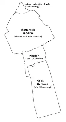 The outline of the ramparts of Marrakesh today, including Almohad and later expansions.