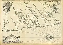 The history of Paraíba began before the discovery of Brazil, when the coastline of the state's current territory was populated by the Tabajara and Potiguara indigenous peoples. When the Portuguese arrived, the region was established as part of the Captaincy of Itamaracá. However, there were difficulties in implementing the Portuguese occupation fronts in the area, especially due to the resistance of the natives and the influence of French explorers, who used the coast of Paraíba for the illegal extraction of brazilwood.[1][2]
