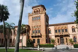 Charles Ringling and his wife, Edith, began building their bay front winter retreat in the early 1920s. Charles Ringling died in 1926, just after it was completed. For decades Edith Ringling remained there and continued her role in the administration of the circus, assuming many duties of her husband, and her cultural activities in the community. Her daughter, Hester, and her sons were active in Sarasota's theatrical and musical venues. What came to be known internationally as the Edith Ringling Estate is now the center of the campus of New College of Florida.[36][37]