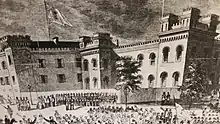 The History of The Citadel began in the early 1820s with the formation of a militia and state arsenal in response to an alleged slave revolt in 1822.[1] By 1842 the arsenal grew into an academy, with the Legislature establishing it as the South Carolina Military Academy. Cadets played a key role in the Civil War, by firing upon a federal ship three months before the war began. Many Confederate officers attended the school.[2] Renamed in 1910 as The Citadel, the school's academic reputation grew. After moving the campus near Hampton Park in 1922, the college has grown substantially. Sixteen years after legal segregation ended in public schools, the Citadel saw the graduation of its first Black student, Charles D. Foster.[3] After an equally rocky journey forward,[4] the Citadel graduated its first female Cadet in 1999. The school has produced many military officers, business, and political leaders throughout its history.