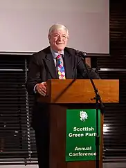 After the independence referendum, the Scottish Greens experienced a massive surge in membership, including future co-leader Lorna Slater.[70][71][72] The party claimed that, for a period in the day after the referendum, it gained a member every 15 seconds.[73] It led to the party's membership becoming younger, and significantly more female alongside being able to hire more paid staff than ever before.[74] The party's co-convenor Patrick Harvie, became a recognised figure on Scotland's political stage[75]