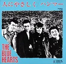 "Hito ni Yasashiku" (人にやさしく, Be Kind to People) was the first single by the Japanese band The Blue Hearts. It was first released on an independent label on February 25, 1987, before the band signed with a record company. Lyrics and music were written by Hiroto Kōmoto, the band's lead vocalist, and was arranged by The Blue Hearts. The track is 5m26s in length. The cover for the single was designed by Junnosuke Kawaguchi, the band's bassist.