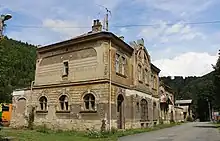An architecturally valuable building is the Hrubá Voda train station. It was built in 1870–1872 and rebuitl and expanded in the Art Nouveau style in 1917.[8]