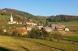 Evidence of an Iron Age hill fort has been identified in the settlement.[3] The local church is dedicated to the Assumption of Mary and belongs to the Parish of Mirna Peč. It is a medieval building and preserved some 15th-century wall paintings on its interior. It was restyled in the Baroque in the 18th century.[4]