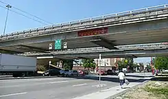 In 1950, Vancouver social scientist Leonard Marsh published a proposal entitled Rebuilding A Neighbourhood, which described the Strathcona area as a "slum" in need of urban renewal.[2][33] The Housing Research Committee's 1957 Vancouver Redevelopment Study targeted the Eastside as an area of "urban decay" and proposed major rehabilitation.[34] Subsequently, in the name of "urban renewal" and "slum clearance", much of Hogan's Alley was razed at the end of the 1960s to make way for the Georgia and Dunsmuir Viaducts.[2] Viaduct construction lasted from 1967-1971, and the structures opened for use in 1972.[35][2]