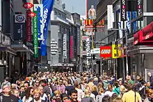 Hohe Straße is a shopping street in the old town of Cologne, Germany, and one of the city's both oldest and busiest streets.[1] Together with many of its adjacent side streets, Hohe Straße is part of a designated pedestrian zone and spans about 680 metres from Cologne Cathedral on its Northern end to Schildergasse on its Southern end.
