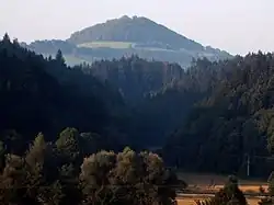 Hohenstaufen is a mountain in the Swabian Jura with an elevation of 684 metres (2,244 ft). It and two nearby mountains known as Rechberg and Stuifen together constitute the so-called "Three Kaiser mountains" (Drei Kaiserberge). The Hohenstaufen is easily visible from the little town of Lorch. The mountain towers over the forests that have overgrown the ruins of the Hohenstaufen Castle, the seat of the former House of Hohenstaufen.[1]