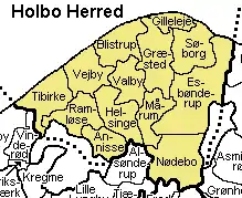 Holbo Herred (Holbo Hundred) was an administrative division in Frederiksborg County in the northern part of the island of Zealand, Denmark. It comprised the present-day Gribskov Municipality plus the parish of Nødebo (which today is in Hillerød Municipality). Previously, Holbo was under Strø Herred.
