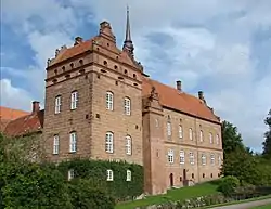 Holckenhavn Castle is a manor house located next to Holckenhavn Fjord, an arm of the Great Belt, just south of Nyborg on the east coast of Funen, Denmark. The current Renaissance castle was built in the late 16th and early 17th century by three consecutive owners. Previously known both as Ulfeldtsholm and Ellensborg, it received its current name in 1672 when it was acquired by Eiler Holck, who at the same time founded the Barony of Holckenhavn. The estate has been in the possession of his family ever since.