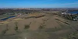 Hole in the Mountain Prairie is located on Buffalo Ridge near the town of Lake Benton in Lincoln County, southwestern Minnesota. It spans a valley of about a half-mile in width, with a total area of 1,364 acres (5.5 km2).[1]