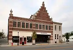 The exterior has a Flemish-style stepped-gable facade and uses Dutch cross bond brick.[2][4] In the interior, the lobby has a beamed ceiling, slate floors, and rough walls.[4] The auditorium contains a 17th-century Dutch landscape that line both interior sidewalls of the theater including windmills that slowly turned modeled after his hometown of Arnhem, Netherlands.[2] It is the only atmospheric theater in the United States built in a primarily Dutch style of architecture.[5]