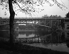 Footbridge over the lake, near the Boyle Ave. entrance (1955).