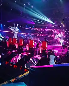 - 1 2 Throughout the first stages of the show, "Second Chance" coaches, Oleksandra & Andriy, would sit in a separate room. The first and only time they sat with the main coaches was for the live final show, where they stayed in Svyatoslav's spot, since he did not come back in this episode.