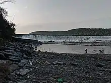The area below the dam is popular with whitewater kayakers, with eleven named hydraulic features.[11] Scheduled whitewater releases[12] from the dam are made, when conditions permit.