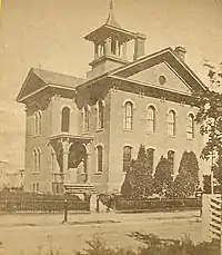 From 1872 to 1881, Holyoke High School was one of about a dozen New England schools which received students from the Chinese Educational Mission.[14] Upon returning overseas some of these students would go on to serve important roles in Qing dynasty China including, but not limited to, Shung Kih Ting,[lower-alpha 1] class of 1880, who would eventually serve as acting deputy commissioner of the Chinese Maritime Customs Service,[15] and Chow Wan Tang[lower-alpha 1] who graduated in 1881 and revisited Holyoke in 1908 as general manager of the Imperial Chinese Telegraph Administration.[16]