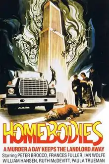 Homebodies is a 1974 comedy horror film directed by Larry Yust. The film features a cast of veteran actors, including Ian Wolfe, Ruth McDevitt, Peter Brocco, and Douglas Fowley. The film centers on elderly residents resorting to murder to protect their condemned building.[1]