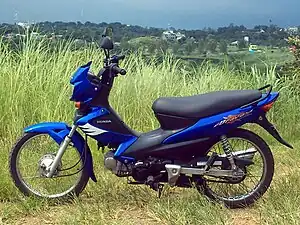 The Honda Bravo is a four-stroke 100 cc (6.1 cu in) underbone class motorcycle designed and manufactured in the Philippines.[1] The frame and engine of the Honda Bravo is the same as the Honda Wave 100 of Thailand, and they differ only in the plastic body fairings. This motorcycle is related to the Honda XRM, which is also designed and manufactured in the Philippines. It uses an aluminium engine.