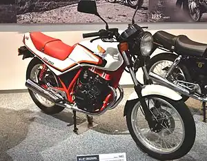 The Honda CBX250RS is a motorcycle first sold by Honda in May 1983 in Japan as their new 250cc sports bike with a view to replacing the popular CB250RS. The engine was based on the XR series with particular links to the XR350 bottom end, including a six-speed gearbox and the same oil pump. The stroke is also the same, but the bore reduced to bring the capacity down to 249 cc (15.2 cu in). The balance shaft was also discarded, with the engine instead being rubber mounted. Unlike any other XR engine the top was given two camshafts. The bike was also equipped with dual carburettors, only one of which was equipped with a pilot circuit and which open different amounts depending on how much the throttle is twisted.