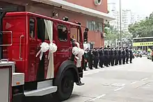 For funerals Turntable Ladder with turntable unit removed is used to carry the coffin.