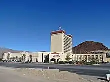 The property was reopened in November 1999, at a cost of $30 million.[14] A name change had already been planned, because the Gold Strike name had been sold to Circus Circus, so the property was renamed as the Hacienda.[13] The Gold Strike name was retained for a property in Jean, Nevada, as part of a larger entity, Gold Strike Resorts.[15] The Hacienda name was itself licensed from Circus Circus, which had owned the demolished Hacienda casino on the Las Vegas Strip.[13]