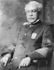 In the course of his 40-year career, Homer saw Boston's police force grow from 746 men to 1,700. He met every president from Rutherford B. Hayes to Woodrow Wilson, and served as an escort for a number of foreign ambassadors.[4] He was known for his diplomatic and courteous demeanor. Remarkably, he only had to resort to violence once: when an unwelcome visitor refused to leave the police commissioner's office, Homer took him by the neck and threw him out.[1] Six more black officers were hired during Homer's tenure, on his personal recommendation.[5] He retired from the force on January 29, 1919, at the age of 70.[4]