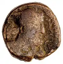 Hormizd II Kushanshah may have been same person as Hormizd II, the King of Kings of the Sasanian Empire from 303 to 309.[2][1] They both minted coins where they were depicted with a winged crown, whilst on the reverse of the Sasanian coins, which usually shows the traditional fire altar flanked by two attendants, also shows a head emerging from the fire, a typical Kushano-Sasanian design which first appears on Sasanian coins during the reign of Hormizd II.[1]