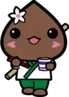 Horokanai's mascot is Horomin (ほろみん). She is a healthy and hard working buckwheat seed. She carries a soba choko and chopsticks to eat her homemade soba noodles. She wears traditional Japanese chef clothing and a buckwheat flower on her head. She carries is a huge stick (that doubles as a staff weapon) on her back. She is unveiled on 18 June 2013.[1]