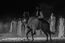 The horse constitutes a cultural heritage, particularly in the Darfur region, among the Missairiyah and the Rizeigat tribes.[4] It appears that horse racing has been practiced in Darfur since 16th century.[5] During the 20th century, a policy of improving breeding was put in place[6] with the support of local tribes, who participated in the establishment of Thoroughbreds, particularly in the Khartoum region.[4] The English imported horse racing in 1929, and built a racecourse in Khartoum, at the confluence of the Blue Nile and the White Nile.[2] They imported other equestrian practices then unknown to the Sudanese, such as polo and tent pegging. While they had no intention of teaching equestrian sport to the Sudanese, this practice survived the colonial period, equestrian sport being in full development during the country's independence in 1956.[2] According to Ahmed Mekki Abdu, first Governor of Khartoum after independence, the English re-sold their horses to the Sudanese before their departure, allowing the maintenance of large stables sometimes numbering dozens of horses.[2]