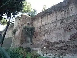 Surrounded to the north, west and east by opus reticulatum retaining walls built along the slopes of the hill, the northern and eastern walls were later incorporated into the Aurelian Walls and so can be partially reconstructed. The northern part is the famous 'Muro Torto'. It was shaped as a wide semicircle, opening to the west, with a staircase leading down to the plain below to the north of the present-day Spanish Steps. It included a two-section piscina (swimming pool) connected to a cistern, consisting of a maze of small tunnels dug into the rock – the hill in the gardens of the current Villa Medici was built on the ruins of the 'Parnassus', an octagonal nymphaeum.