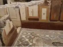 The existing nearby public baths, after being destroyed in a fire, were reconstructed between 323 and 326 (therefore renamed Thermae Helenianae).[15] A residential area for members of the court (e.g. the so-called "Constantinian domus" excavated between 1996 and 2008) was created close to the aqueduct,[16] and the part of the circus that remained inside the walls was restructured for service, connection and perhaps residences for the servants of the imperial court.[8]
