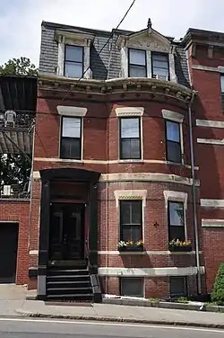 The Hotel Adelaide is a historic apartment house at 13–21 High Street in the Pill Hill neighborhood of Brookline, Massachusetts, United States. Built in 1875, it is one of the earliest known examples of a duplex-style apartment house, in which the individual units occupy space on two floors, connected by a private staircase. The building and added to the National Register of Historic Places in 1985.[1]