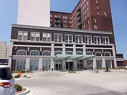 The hotel is connected to the north building of the RiverCenter, Davenport's convention center, and across the street from the RiverCenter south building. The hotel is just down the street from the Adler Theatre. The Blackhawk has been host to several high-profile people including Presidents Barack Obama, Herbert Hoover, Richard Nixon, writer Carl Sandburg, and boxer Jack Dempsey. Actor Cary Grant was staying at the Blackhawk Hotel when he died in Davenport.[2][3] The hotel named rooms 412–414 the "Nixon Suite". Big bands such as Guy Lombardo and Stan Kenton played at the Blackhawk on many occasions.[3] It has been individually listed on the National Register of Historic Places as the Blackhawk Hotel since 1983.[1] In 2020 it was included as a contributing property in the Davenport Downtown Commercial Historic District.[4]