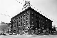 Hotel Normandie in the 1940s, Looking SW at the intersection of 6th and Normandie.