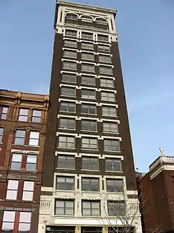 Hotel Washington, also known as the Washington Tower, is a historic hotel building located at Indianapolis, Indiana. It was built in 1912, and is a 17-story, rectangular, Beaux-Arts style steel frame and masonry building. It is three bays wide and consists of a three-story, limestone clad base, large Chicago style window openings on the fifth to 13th floors, and arched window openings on the 17th floor. It is located next to the Lombard Building. The building has housed a hotel, apartments, and offices.[2]:2–3