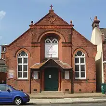 The church's local influence grew, and in 1899 it expanded its reach by opening a mission church, Rutland Hall, in the Aldrington area of Hove. A major benefactor of this new place of worship[4] was William Allin Hounsom jp (1848–1934), a longstanding member of Cliftonville Congregational Church:[5] he raised funds, gave land for the church and donated a house.[4] Described as "a stalwart figure in Congregationalism in Sussex and beyond",[6] Hounsom had also contributed money to the founding of a Congregational chapel at Horsted Keynes in West Sussex.[7] In 1909, he was living at 41 New Church Road in Hove and was recorded as owning much land in the West Sussex parish of Yapton, near Arundel.[8] He also held land in Ashdown Forest in East Sussex.[9] Later in the 20th century he moved to 29 New Church Road, where he died on 28 January 1934.[5][10] In the meantime, Rutland Hall's fortunes were declining: it was requisitioned for wartime use and most of the male members of the congregation were called up for military service.[4]