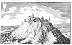 Around the year 1050, the territory of Höchst detached itself from the March (territory) Umstadt, which had already been erected by the Imperial Abbey of Fulda in about 755. In order to protect their interests and territory the abbots of Fulda then used the noble lords of Lützelbach as bailiffs, already holders of allods in the area. Ludwig of Lucelenbach is the first family member mentioned in 1115[1] followed by his descendant Wieknand, grandfather of the first Breuberg, Konrad I (Reiz von Lützelbach) confirmed in documents in 1160[2][3] and by his son Konrad again in 1189.[4]